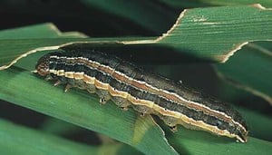 There is no time to waste when looking for armyworms. The fall armyworm has four life stages: egg, larva, pupa, and adult. Adults are usually gray in color with a 1.5-inch wingspan. It’s two forewings are spotted with flecks of white and the underwings are white and slightly transparent. They fly and mate at night with females laying up to 1,000 eggs on host plants or indiscriminate surfaces.