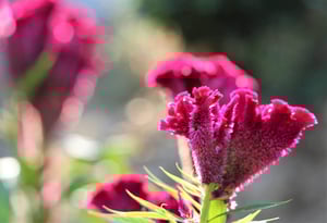 - Celosias. These flowers are striking! The cockscomb variety is sure to stand out among the other flowers in your garden. Its swirly bloom is often compared to a rooster’s head - hence its name. Other varieties like the plumosa look like bright feather plumes and make great filler for bright summertime arrangements. They love moist soil and hot, sunny spots.